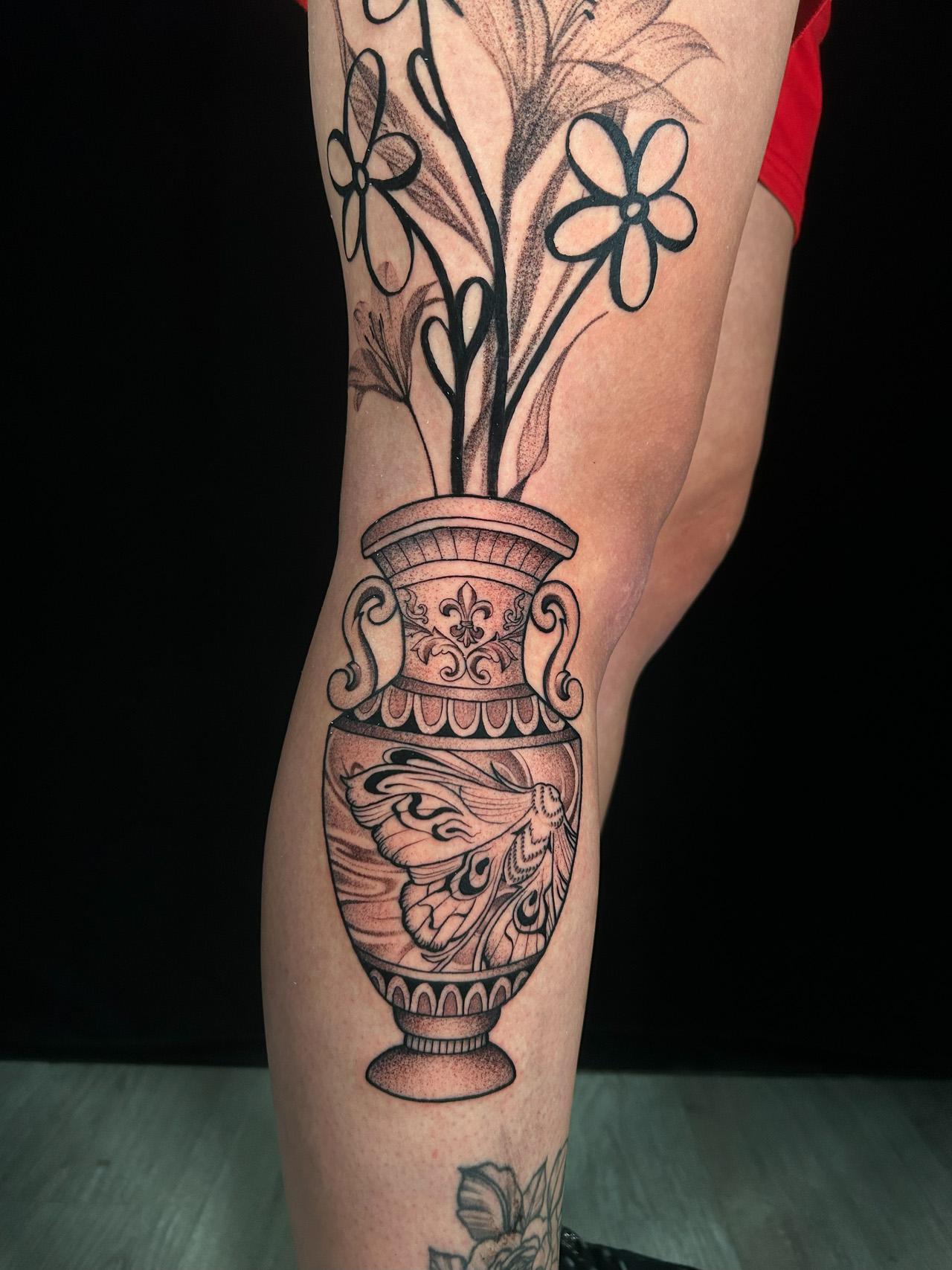Las formas no son casuales. Los lirios representan la inocencia y la honestidad, mientras que la polilla simboliza la búsqueda interior, el cambio silencioso, ese que sucede sin ruido, sin testigos, pero que nos transforma por dentro.